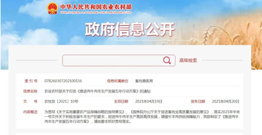農(nóng)業(yè)農(nóng)村部落實2021年中央一號文件關(guān)于積極發(fā)展牛羊生產(chǎn)的要求,促進肉牛肉羊生產(chǎn)高質(zhì)高效發(fā)展,增強牛羊肉供給保障能力,制定了《推進肉牛肉羊生產(chǎn)發(fā)展五年行動方案》(以下簡稱方案),并要求各省抓好貫徹落實。